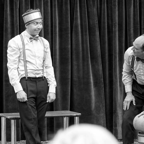 Ganz anders verlief die Darbietung des anschließend auftretenden Duos extraart: mit ihrer Jonglage und Gleichgewichtsartistik, gewürzt mit mimischem Humor und treffend ausgewählten Musikstücken konnten sie die Zuschauer für sich gewinnen!